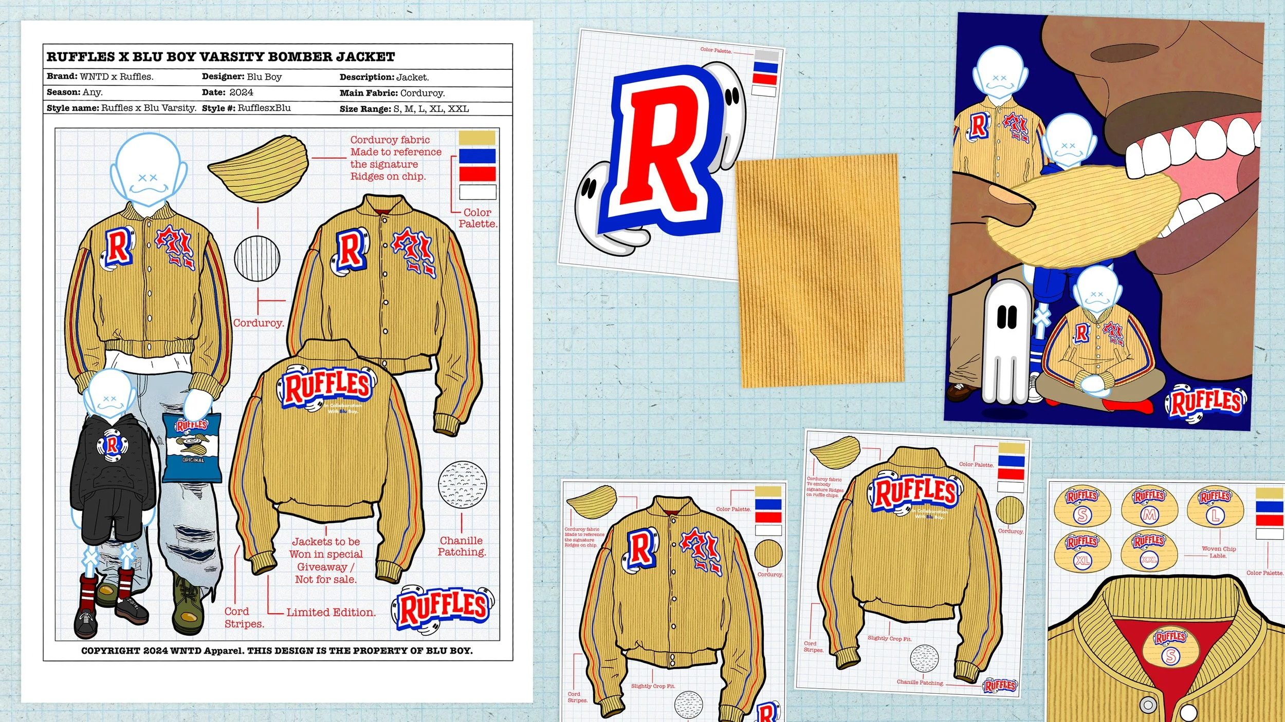 We saw corduroy’s ridged texture making a comeback in streetwear fashion, and created RidgeWear by Ruffles. We collaborated with up-and-coming designer, Blu Boy, to translate Ruffles’ iconic ridges into sought-after streetwear.